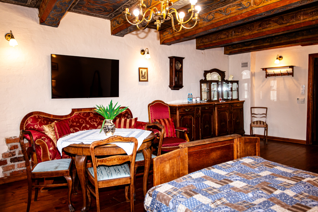 Apartament z widokiem, który każdego ranka przypomina, że jesteśmy w sercu toruńskiej historii. Idealny dla osób, które pragną połączyć komfort z autentycznym doświadczeniem epoki, w przestrzeni, gdzie sztuka użytkowa spotyka się z miejską panoramą.